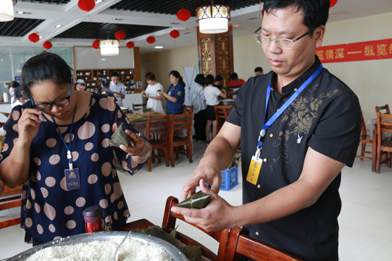 (一)“粽”覽巧手——包粽子大賽 下午三點(diǎn),在人事行政經(jīng)理雷斐的一番精彩講話后,包粽比賽正式開始!由公司各部門組成包粽小組紛紛大顯身手,拿出看家絕活,女同事們手法嫻熟把一個(gè)個(gè)粽子包的非常精美,財(cái)務(wù)主管李懷新更是秀了一把好手藝,他包的粽子有棱有角,端端正正,三兩下子一個(gè)飽滿美觀的粽子就完成了!正是鐵漢也有柔情一面!良芯小組的男同事也不甘示弱,邊看邊學(xué),認(rèn)認(rèn)真真地完成了包粽任務(wù)。最后,財(cái)務(wù)部采購(gòu)部小組憑借實(shí)力獲得了本次包粽比賽的冠軍,董事長(zhǎng)助理兼財(cái)務(wù)中心總監(jiān)莫麗軍為冠軍隊(duì)伍頒發(fā)獎(jiǎng)品。