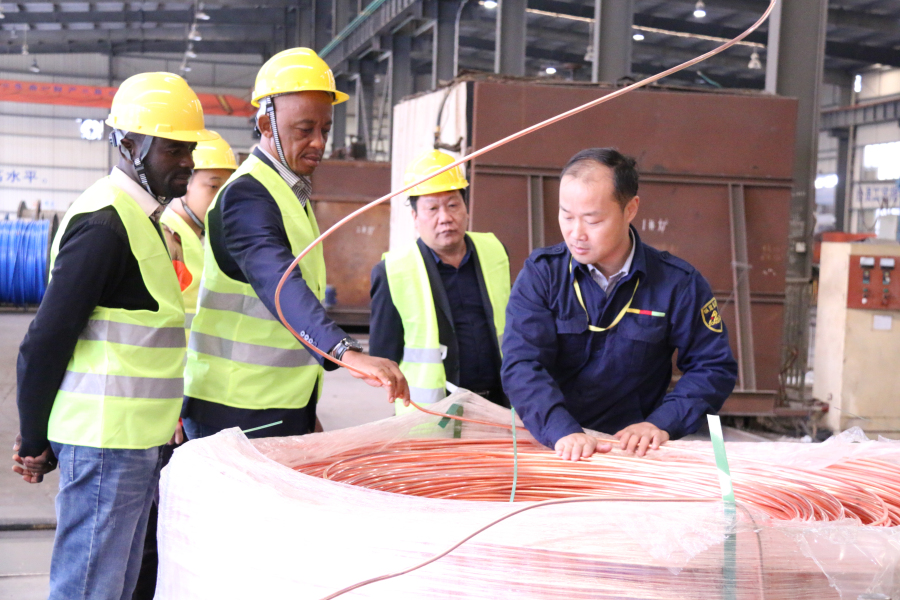 2016年11月26日,非洲剛果金國(guó)家電網(wǎng)總經(jīng)理丹尼斯一行不遠(yuǎn)萬(wàn)里蒞臨廣西縱覽線(xiàn)纜集團(tuán)有限公司參觀(guān)考察。 在劉總工程師等領(lǐng)導(dǎo)的陪同下,宏銳公司銷(xiāo)售總監(jiān)魯玉成和非洲剛果金國(guó)家電網(wǎng)總經(jīng)理丹尼斯參觀(guān)了我公司的生產(chǎn)車(chē)間。劉總工程師詳細(xì)介紹了我公司生產(chǎn)的線(xiàn)纜產(chǎn)品特性與亮點(diǎn)。丹尼斯在切身體會(huì)了我公司的生產(chǎn)情況和產(chǎn)品之后,對(duì)公司的技術(shù)實(shí)力及規(guī)模表示贊賞,并且詳細(xì)的詢(xún)問(wèn)了線(xiàn)纜的生產(chǎn)技術(shù)和銷(xiāo)售情況。他表示,此次訪(fǎng)問(wèn)不僅有助于剛果金學(xué)習(xí)借鑒中國(guó)的經(jīng)驗(yàn),還將有力促進(jìn)縱覽與剛果金的友好交流合作。最后,丹尼斯與縱覽線(xiàn)纜集團(tuán)的員工進(jìn)行了親切合影,還表達(dá)了并進(jìn)一步建立合作關(guān)系的意愿,希望能與縱覽集團(tuán)進(jìn)行深入的交流與合作。 |