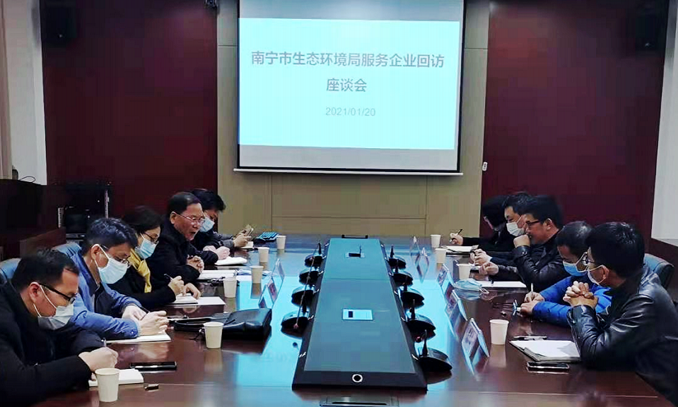 2021年1月20日,南寧市生態(tài)環(huán)境局黨組書記、局長(zhǎng)韋好鵬,總工程師陳莉一行到南寧市經(jīng)濟(jì)技術(shù)開(kāi)發(fā)區(qū)回訪縱覽集團(tuán)等南寧市首批環(huán)保重點(diǎn)服務(wù)單位。