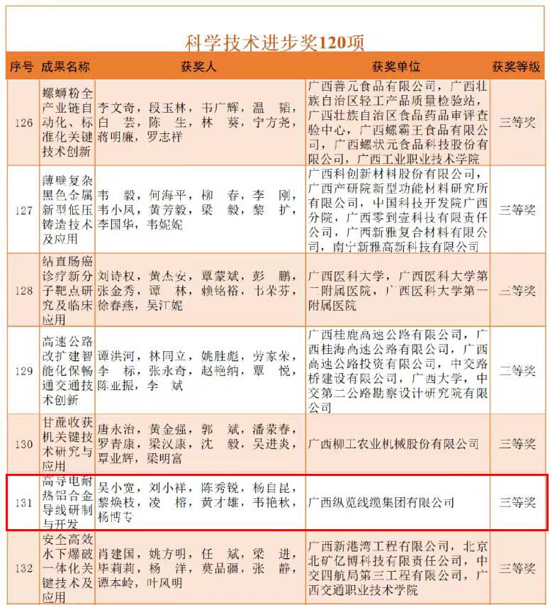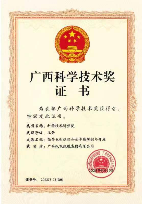近日,2023年廣西科學(xué)技術(shù)獎(jiǎng)勵(lì)大會(huì)在南寧隆重舉行,會(huì)議表彰了獲得2022年度廣西科學(xué)技術(shù)獎(jiǎng)獲獎(jiǎng)單位和人員。自治區(qū)黨委書記、自治區(qū)人大常委會(huì)主任劉寧出席大會(huì),自治區(qū)黨委副書記、自治區(qū)主席藍(lán)天立在會(huì)上講話,并共同為獲獎(jiǎng)代表頒獎(jiǎng)。 我集團(tuán)研發(fā)團(tuán)隊(duì)科研成果《高導(dǎo)電耐熱鋁合金導(dǎo)線研制與開發(fā)》項(xiàng)目榮獲2022年度廣西科學(xué)技術(shù)進(jìn)步獎(jiǎng)三等獎(jiǎng)。 本項(xiàng)目發(fā)明的高導(dǎo)電耐熱鋁合金導(dǎo)線制備技術(shù),解決了長期以來困擾國內(nèi)線纜制造企業(yè)該產(chǎn)品導(dǎo)電性能不穩(wěn)定、原材料品位純度要求高,生產(chǎn)效率低,難以批量生產(chǎn)的問題。為國家電網(wǎng)和南方電網(wǎng)等電網(wǎng)公司高壓、超高壓輸電線路工程高導(dǎo)電耐熱鋁合金導(dǎo)線制備,提供了技術(shù)和生產(chǎn)保障。滿足了電力建設(shè)工程對輸電線路架空導(dǎo)線長距離、大跨越、大傳輸容量、高導(dǎo)電率的技術(shù)要求。 這是縱覽線纜集團(tuán)近年來高度重視科研投入、加大力氣推進(jìn)創(chuàng)新工作的縮影,也是我集團(tuán)深入貫徹實(shí)施創(chuàng)新驅(qū)動(dòng)發(fā)展戰(zhàn)略,聚焦產(chǎn)業(yè)鏈深度融合,推動(dòng)產(chǎn)品優(yōu)化升級(jí),大力加強(qiáng)高質(zhì)量發(fā)展的重要成果。 下一步,縱覽線纜集團(tuán)將不忘初心,做創(chuàng)新驅(qū)動(dòng)發(fā)展排頭兵,為壯美廣西經(jīng)濟(jì)建設(shè)貢獻(xiàn)縱覽力量。 |