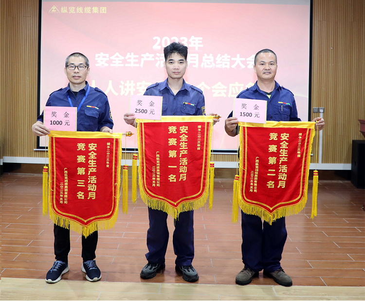 安全生產(chǎn)活動月期間,各部門根據(jù)“安全生產(chǎn)月”活動方案統(tǒng)一部署,全面落實以“人人講安全,個個會應(yīng)急”為主題,開展了系列安全生產(chǎn)宣傳活動,各部門在車間、辦公區(qū)域懸掛安全生產(chǎn)標(biāo)語、橫幅,營造了良好的宣傳范圍。此外,我集團(tuán)廣泛開展安全生產(chǎn)知識競賽活動,組織進(jìn)行了有針對性的應(yīng)急救援演練,通過安全教育和培訓(xùn),強化一線作業(yè)人員安全基本知識和安全技能;全面開展安全隱患排查治理活動,確保整改落實到位。各項活動取得了明顯成效。 6月17日,我集團(tuán)開展了安全生產(chǎn)活動月總結(jié)大會暨安全知識競賽活動,標(biāo)志著縱覽線纜集團(tuán)2023年安全生產(chǎn)活動月圓滿結(jié)束。安全領(lǐng)導(dǎo)小組組長、董事長陳秀銳出席會議并講話;安全領(lǐng)導(dǎo)小組副組長劉小祥、吳培軍、黎永豪,安環(huán)辦、各中心領(lǐng)導(dǎo)、部門負(fù)責(zé)人參加會議。 陳秀銳董事長對公司安全生產(chǎn)工作取得的成績給予肯定,解析了安全工作重點和當(dāng)前存在的問題。他表示,公司十分重視安全生產(chǎn),每年如期舉行安全生產(chǎn)活動月就是為了讓大家重視安全生產(chǎn)。他強調(diào),安全生產(chǎn)是大愛,管理團(tuán)隊要高度重視安全生產(chǎn)工作,接受員工監(jiān)督,自我反省、自我檢查,要敢管,解決根源性問題,讓安全生產(chǎn)深入到每一個人,讓全體員工達(dá)成安全生產(chǎn)共識,重視安全生產(chǎn);各層級領(lǐng)導(dǎo)要自我反思、自我剖析、自我批評,加強領(lǐng)導(dǎo)力提升、水平提升,安全生產(chǎn)不能停于表面、流于形式,要付諸行動,安全生產(chǎn)是責(zé)任、是規(guī)范、是規(guī)劃。作為實操者,要積極踐行“做負(fù)責(zé)任的人”文化價值觀,為自己負(fù)責(zé)、為家人負(fù)責(zé)、為公司負(fù)責(zé),希望安全生產(chǎn)不單單在形式上轟轟烈烈,更要在行為上取得更大的成就,我們要規(guī)范開展每一項工作,共同鑄造平安縱覽,安全縱覽。 在會議開始前,進(jìn)行了一場精彩紛呈的安全知識競賽,五支參賽隊伍經(jīng)過五輪激烈角逐,最后結(jié)合安全隱患排查、安全征文、技能競賽綜合成績,生產(chǎn)隊獲安全生產(chǎn)活動月競賽一等獎;電力隊獲安全生產(chǎn)活動月競賽二等獎;財質(zhì)隊獲安全生產(chǎn)活動月競賽三等獎。與會領(lǐng)導(dǎo)向安全生產(chǎn)活動月獲獎隊伍頒發(fā)了錦旗。 |