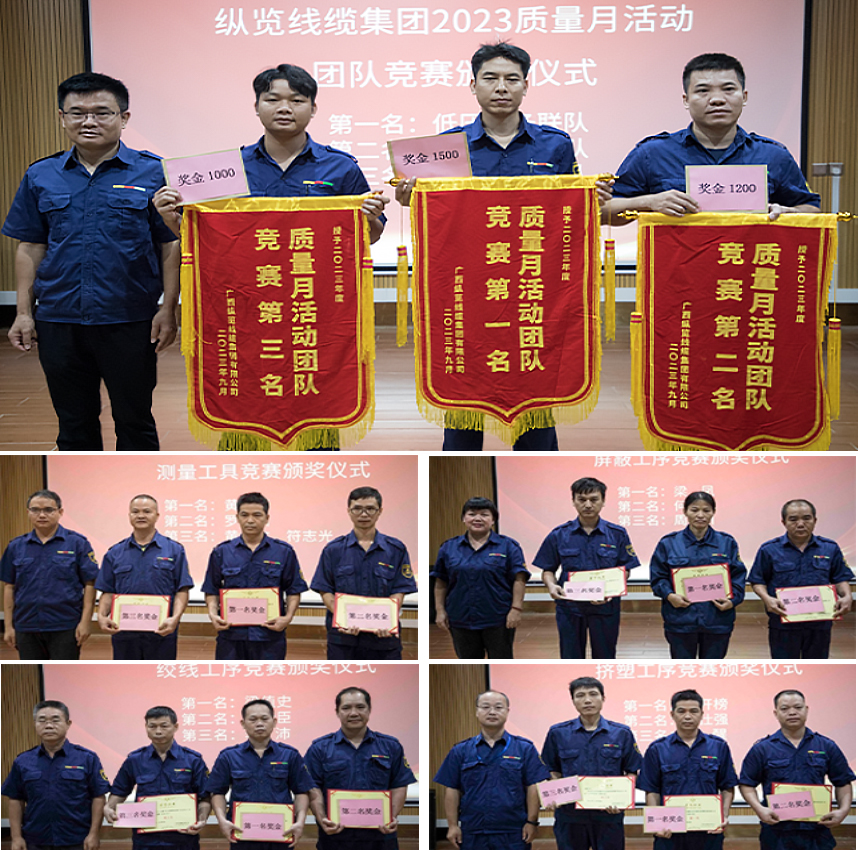 10月14日,縱覽線纜集團(tuán)“2023年度質(zhì)量月”活動總結(jié)暨表彰頒獎儀式在公司多媒體廳舉行。董事長陳秀銳出席并講話,“質(zhì)量月”活動總指揮劉小祥就“質(zhì)量月”活動各項(xiàng)工作開展情況作了總結(jié)發(fā)言,公司領(lǐng)導(dǎo)為在“質(zhì)量月”活動中表現(xiàn)優(yōu)秀的團(tuán)隊(duì)和個(gè)人進(jìn)行頒獎,公司各部門領(lǐng)導(dǎo)及全體參賽組員參加會議。 陳秀銳在講話時(shí)強(qiáng)調(diào),縱覽在創(chuàng)立初期定下了全力服務(wù)電網(wǎng)的發(fā)展戰(zhàn)略,是對質(zhì)量的堅(jiān)守成就了縱覽的今日。電線電纜的質(zhì)量關(guān)系到消費(fèi)者的生命,更是企業(yè)的生命。全體縱覽人要以質(zhì)量月活動為契機(jī),分析生產(chǎn)過程中存在的質(zhì)量隱患,持續(xù)提高全員質(zhì)量意識、提升員工專業(yè)技能水平,做到人人都是質(zhì)量員。必須將質(zhì)量工作作為長期基礎(chǔ)性工作抓實(shí)抓細(xì),持續(xù)增強(qiáng)縱覽長期服務(wù)電網(wǎng)以來的質(zhì)量優(yōu)勢,服務(wù)水平。 本年度質(zhì)量月活動在9月初啟動,公司工廠中心各職能部門通過組織開展崗技能培訓(xùn)、技能考核,質(zhì)量隱患排查,測量工具、工藝控制、質(zhì)量檢驗(yàn)工序?qū)嵅俑傎惖?/font>活動,廣大員工的質(zhì)量意識得到進(jìn)一步增強(qiáng),員工的崗位技能實(shí)現(xiàn)進(jìn)一步提升。 質(zhì)量月活動剪影: 頒獎典禮 質(zhì)量就是責(zé)任,質(zhì)量更是榮譽(yù),縱覽線纜集團(tuán)作為廣西工業(yè)龍頭企業(yè),一直以來將質(zhì)量管理視為企業(yè)的重中之重,建立健全質(zhì)量管理體系,積極踐行公司“用良芯 做好線”的質(zhì)量文化,助力企業(yè)高質(zhì)量發(fā)展! |